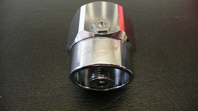 A Kovea propane adapter. This end connects to a typical threaded backpacking stove. |